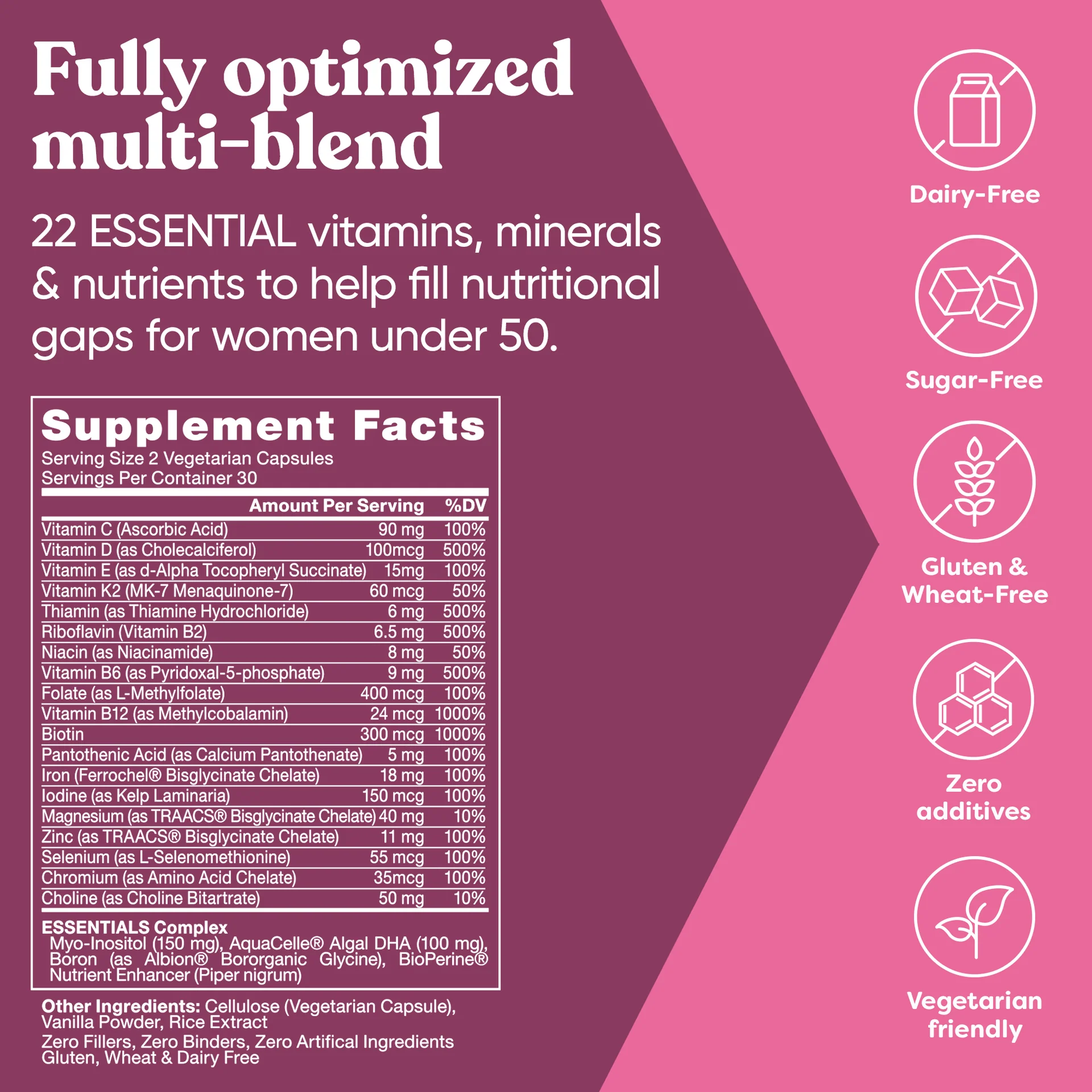 Essentials Complex: Myo-Inositol (150 mg), Algal DHA (100 mg), Boron, Bioperine Nutrient Enhancer (Black Pepper extract)